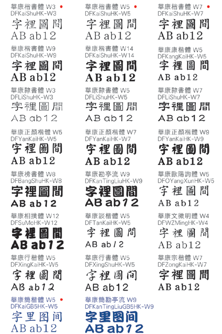 • 代表完整支援 HKSCS-2001 ※ 本產品全部採用 Unicode 字型編碼及支援 HKSCS-2001